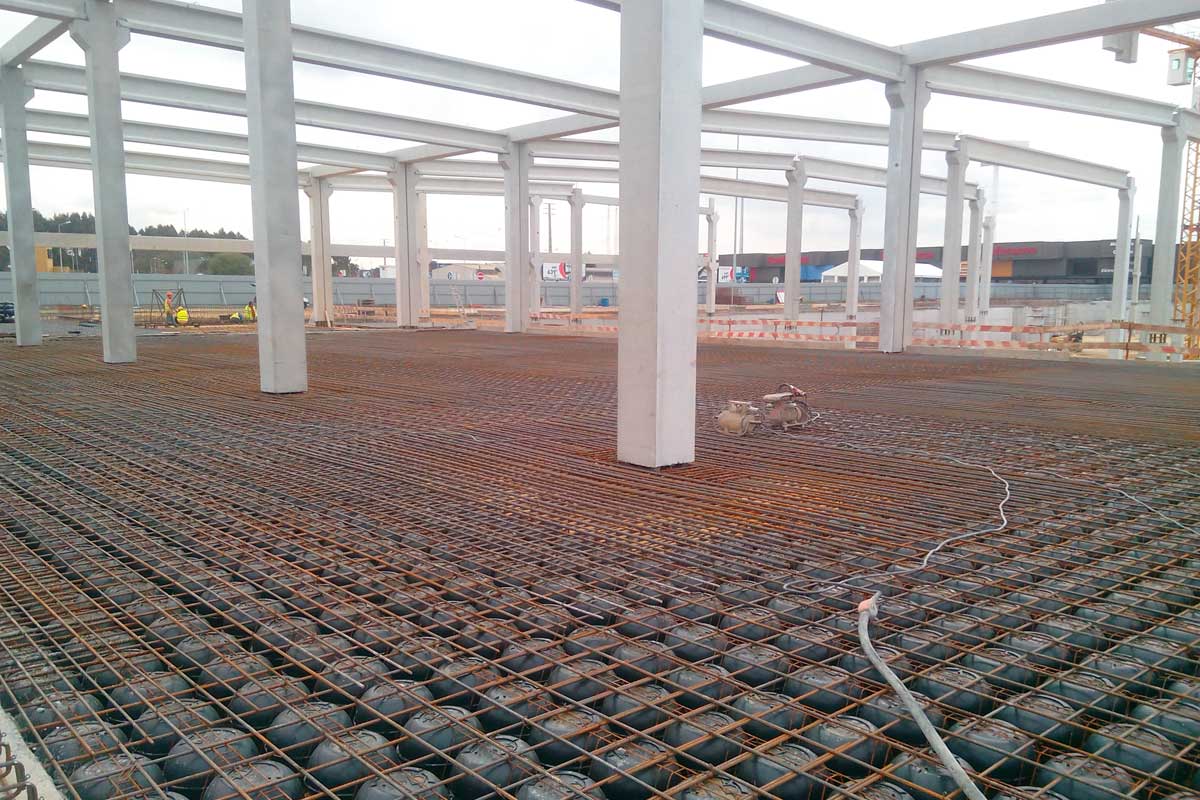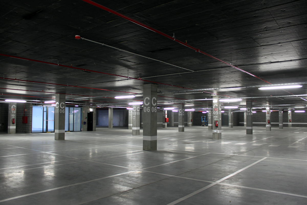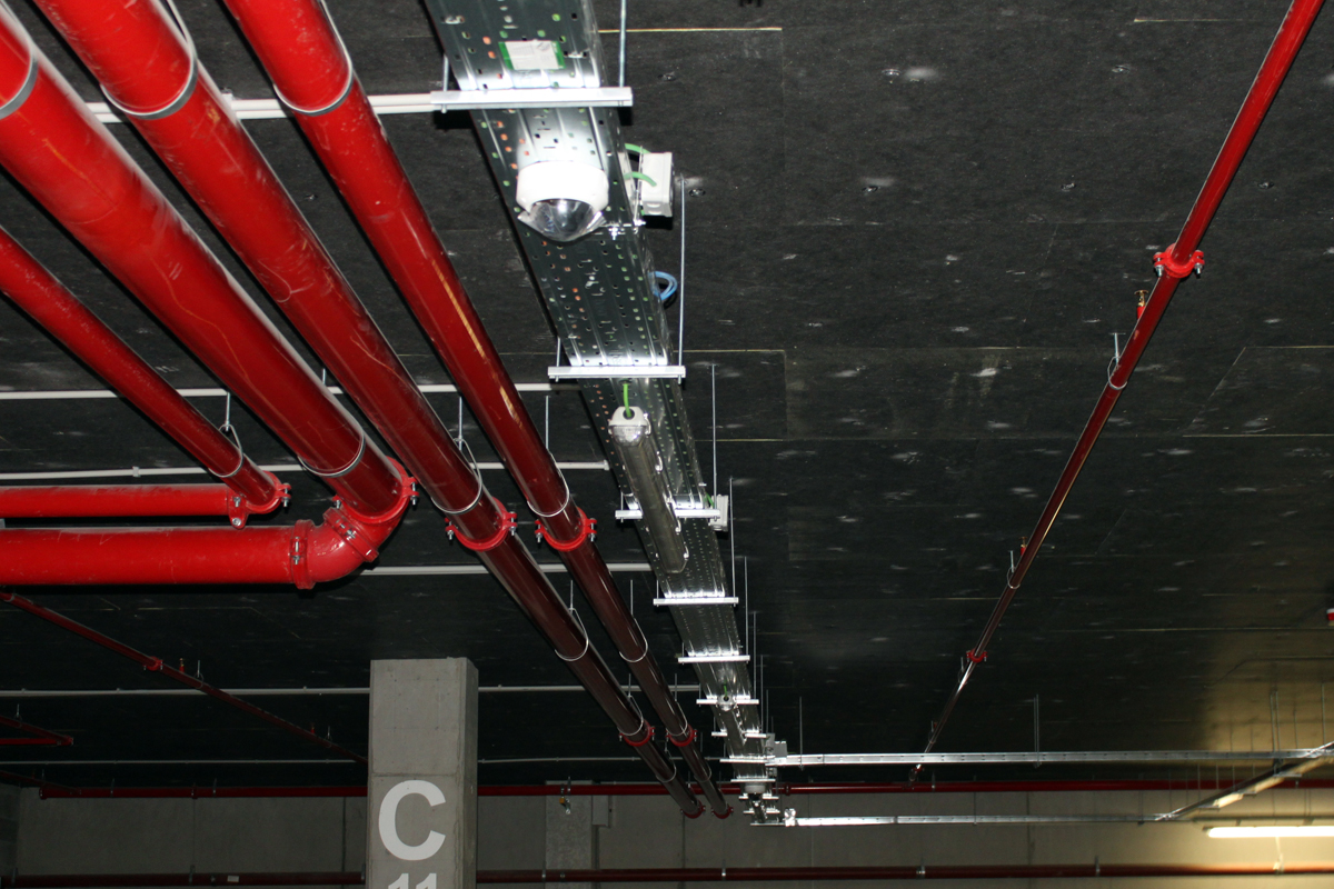 Installations électriques, télécommunications, système automatique de détection de feu et du monoxyde de carbone, système de vidéosurveillance, cuves et boîtes de sol au magasin Media Markt.